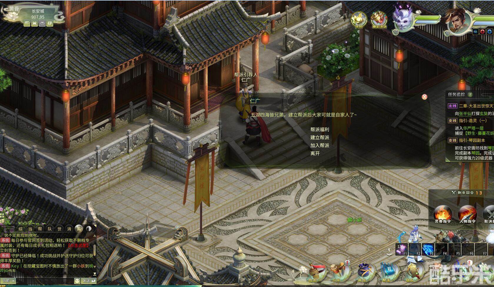 角色人物到达26级后就可以建立帮会或者加入帮会了,建立帮会需要找到帮会引荐人仁广,选择50万银两或者20人响应两种建立方式。鉴于刚开区的背景,无疑找20个小伙伴响应是最有性价比的方式,既能省下一笔银子,又能让帮会增加人气,赢在起跑线。