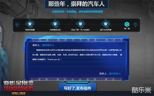 在提供丰厚的福利助力之余,《变形金刚OL》游戏新大陆还为所有变形金刚的真爱粉丝提供了一方追寻回忆的空间。玩家可以向自己最爱的汽车人英雄发送“宇宙电波”,书写自己与汽车人有关的情怀和追忆,可获得专属“电波段”,百度搜索即可完美重现!