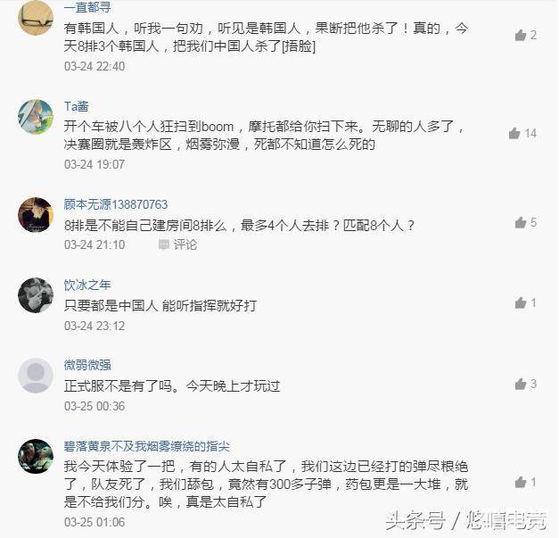 笔者连玩3局,基本都是P城跳50个,机场或者学校50个,反正都愿意选资源多的地儿,这个倒是理解,人太多需要发育,可是尼玛能不能有点素质啊?捡到98K,队友不给倍镜开喷杀人,被敌人打到了就说人家开挂,总之啥奇葩都碰到了,活生生的绝地求生:素质战场!