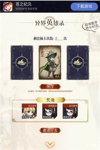 《苍之纪元》限定招募活动——镜之抉择将于3月28日正式开启,限定卡池开放期间,在卡池中招募到全新限定英雄的概率将会大幅提升! 带有激励及吸血效果的“箭无虚发”罗宾汉、擅长诅咒及反射的“镜之魔女”维多利亚等待团长大人的招募!除此以外,各位还能够在官网、官方微博、官方微信、官方QQ群等渠道中,领取游戏礼包,为你的冒险助力哟!