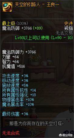 与戒指一样的属性,唯一的是戒指面板是力量和智力,项链则是智力和精神,其他3%的攻速移速,5%的施放速度,18点全属强,14点全属抗,10%的双暴,3%的最终伤害。