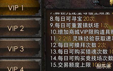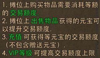 最后编辑于7年前买卖是玩家之间互换所需物品道具必要存着的,传奇战域里面的摆摊系统就是如此,从V0-V18之间的交易额度都有不同,如图: