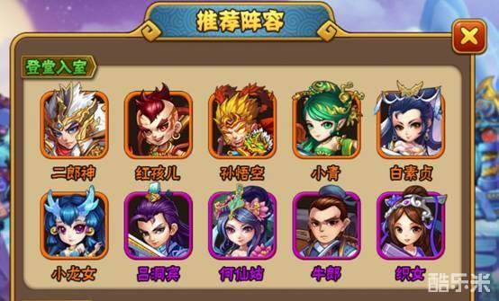 当然,对于初入游戏的新手玩家,前期可以组建易于收集的组合。吕洞宾、何仙姑、红孩儿、二郎神、小青和白素贞、牛郎织女都是不错的选择。吕洞宾何仙姑,牛郎织女都是前期就能获得的优质紫卡,且都能出现合击技能,红孩儿和二郎神可以在登录中获得,而小青和白素贞则通过后续的副本宝箱即可凑齐。这样的队伍,应付日常玩法也基本能满足了。后期可以再换成孙悟空唐僧、关羽张飞这样的强力全橙武将组合。