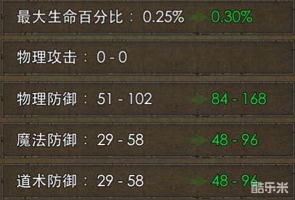 强化头盔、腰带、鞋子部位可获得生命百分比、各项防御加成。