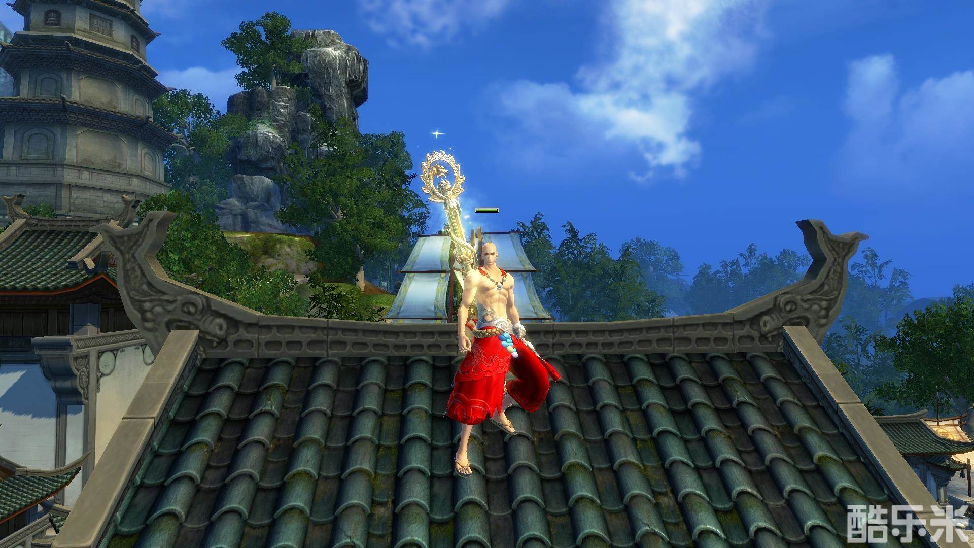 少林所堆的四个技能金刚、铜山、猛虎、狂风,其中金刚和猛虎被削弱过,所以可以优先考虑堆铜山、狂风,真绝方面也是如此,不过我要提醒一点是,因为铜山、金刚都是靠真绝的所以打架的时候能抗的住或者能生存下来是首要,其次是怎么攒怒气,怎么找一个好的环境打出输出。还有,这游戏出了一个叫装备幻化的功能,我个人推荐武器外观幻化成黄金武器或者42级的绿装寒蝉摩棍。时装的话不太适合文邹邹的,像上图这种袒露的粗犷风格比较合适,最好再配个光头,这样就更帅了。