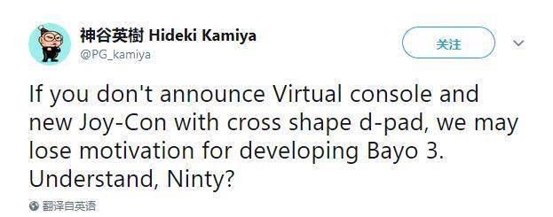 要说在推特上最活跃的游戏制作人有哪些,除开小岛秀夫,大家第一个想到的应该是神谷英树了,最近他开始在推特上威胁任天堂了,说如果任天堂还不发布Switch的虚拟主机的话,那他就没有激情去开发《猎天使魔女3》了。