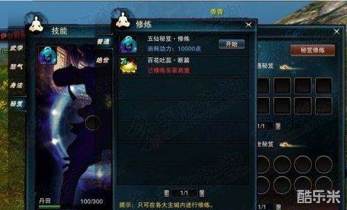 接着就点 那个 “秘笈修炼” ,对断篇进行升级。(我这已经是学完后截的图)