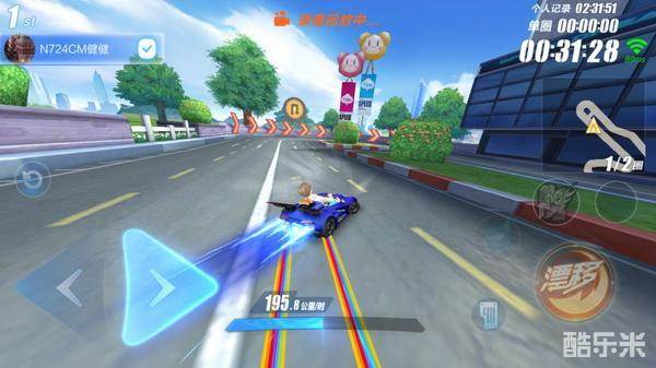 开局有第一个弯是锯齿状的,新手刚接触的时候应该会比较烦,这里选择一个小飘加速即可,千万不可以在这里大漂移,不然撞墙或者被其他玩家撞停的概率是百分之百。然后,是一个很好过的直角弯直接甩尾。如果一切顺利的话,现在手里应该至少捏了一个氮气了。