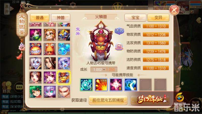 玩家等级达到45级后,可以直接去混沌时空五层捕捉(必须先学会帮派技能万兽决)野生火麟兽,然后返生成宝宝。