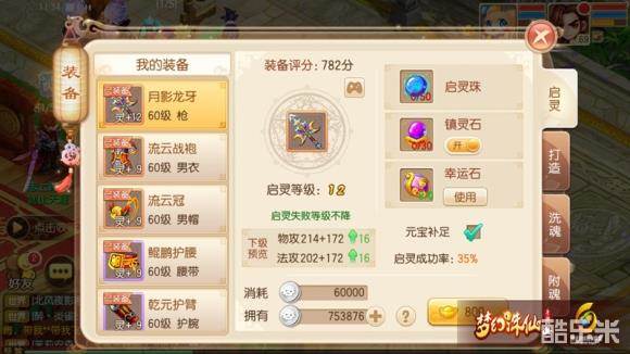 关于启灵,相信很多玩家都有一个痛苦的历程,启灵成功固然使人欣喜,而当启灵失败,看着自己的战力往下掉,那心简直是在掉血,1-6级的启灵过程中很少会出现启灵失败的情况,不过到了6升7,便有了失败的概率。到了7升8的阶段,如果你镇灵石充足的话就用一下,紧缺的话就试试运气,到了8上9,那镇灵石几乎是必备的了,而到了11级的话,还要加进幸运石提升成功概率。从11星到12星,如果没有足够的启灵珠和镇灵石,折合的元宝数量是800,不过随着启灵等级越高,战力加分也就越多。