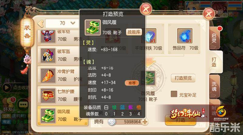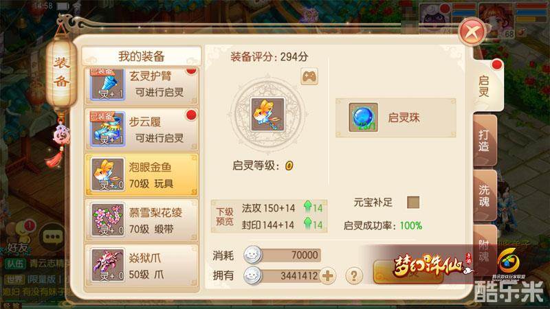 在打造出装备之后,培养是必不可少的,装备的启灵可以继承原来60级装备的等级。70级装备的魂条数量是4条,魂属性要远远高于70级之前的装备,70级这个阶段非常注重洗魂,尤其是装备启灵等级遇到瓶颈的时候,如果能洗出一套好的魂属性,对战斗力的提升是巨大的。在圣巫的武器和装备的魂选择上,适合圣巫的属性是封印、速度、气血、法暴、物抗和气血,其中以武器的封印和鞋子的速度最为重要。