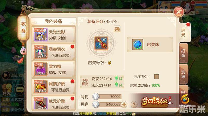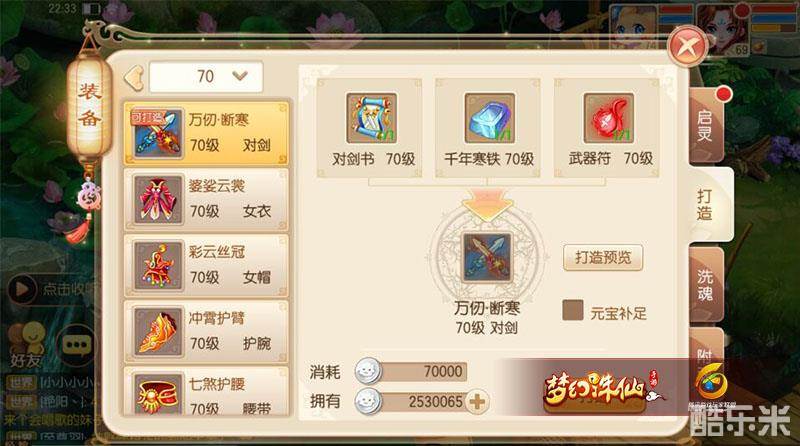在打造的过程中,不需要追求极致的灵属性和特效,毕竟70级并不是最终的阶段,把材料花在启灵和洗魂两个相对长远的地方比较好。
