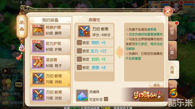 所以说洗魂属性的时候,不光要看颜色,还要看在哪个部位,值不值得替换等因素,就青云这个门派而言,武器选择法攻,护腕选法爆,鞋子可以的话选速度,其他装备能选就选一下,材料有限防御气血混搭过渡也是可以的。