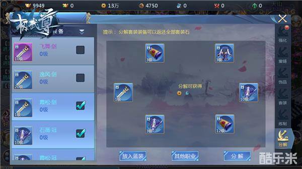 5、装备分解:替换下来的装备,如果没用的话可以进行装备分解,装备分解会返还强化所用的金币、经验等材料哦