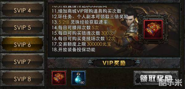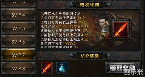 4. 提升VIP等级,在SVIP6和SVIP7和分别赠送1件王者衣服和一把王者神剑: