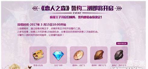 此次誓约二测的专题为玩家准备了满满的福利惊喜,每日投喂完自家心爱的王子后就可以获得一次抽奖机会。这样发放福利方式一举两得,让玩家不仅可以定时与王子们相约,更可以收获小礼物。若是觉得一次抽奖没抽够的玩家也别着急,分享活动页即可获得额外2次抽奖机会。在这里悄悄的告诉大家,二测时间开启的越早,福利将会越多。请赶紧叫上身边的小伙伴,一起来“投喂”帅气的王子殿下开启二测之旅吧。