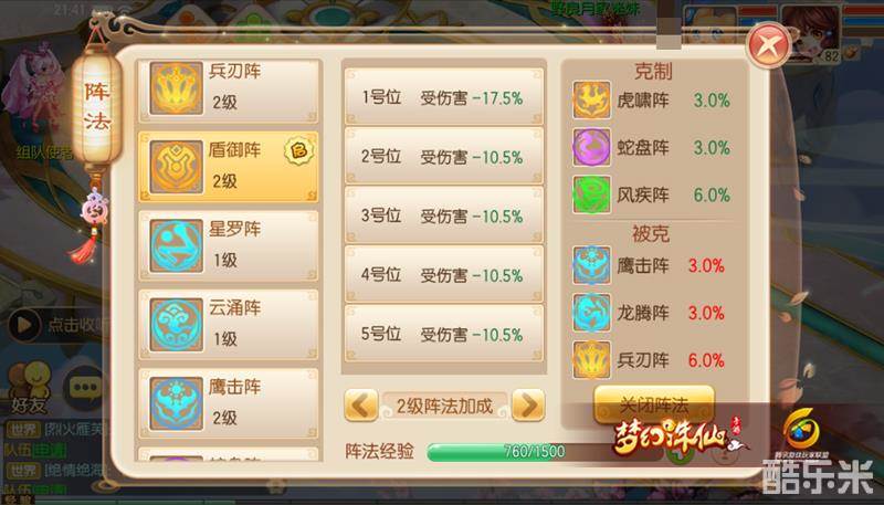 之前讲到虎啸阵可以打通大部分关卡,然而到二十关之后敌人的伤害能力和血量提升明显,这时天音低输出的缺点被无限放大,至于不能效率清怪的后果就是仙侣性命受到威胁,此时我们就需要靠一场持久战来耗死对手,从而盾御阵的减伤效果就能发挥明显作用。