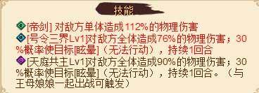天庭共主:全体造成90%的物理伤害,30%使目标眩晕持续1回合。