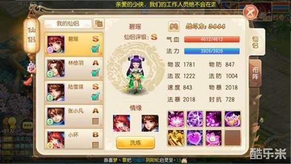 所以兜妹梦寐以求的鬼厉男神需要五十万金币才能出来陪伴兜妹了。(不过也快了,只差四十九万了!2333……)而各种仙侣的特点就千差万别了,总的来说,分为辅助型仙侣和输出型仙侣,这和各位少侠的职业都是相对应的。