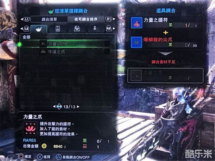 合成的方式很简单别看99那是上限,其实只需要一个爆鳞龙的尖爪+力量护符,即可合成。守护爪雷同。