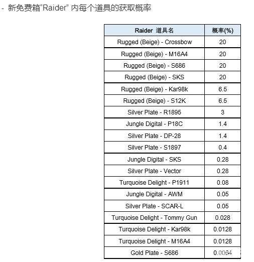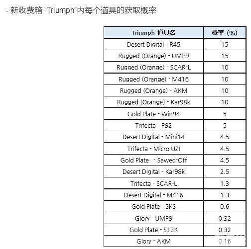 在公布了枪械皮肤之后,蓝洞同时也发布了这些皮肤的获取概率论。