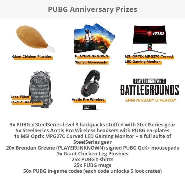 赛睿《绝地求生》周年庆活动奖品极其诱人,包括: