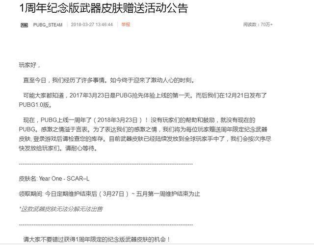 绝地求生周年庆送限定枪械皮肤 玩家并不买账:好好做游戏就行了