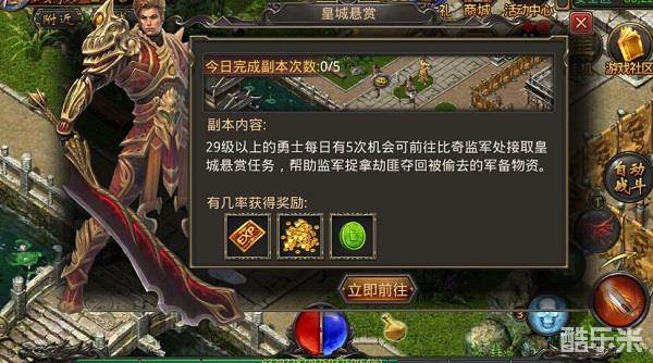 最后编辑于7年前大家好,正所谓可一日不进食,但不可一日不传奇,又来到了我们的每日必完成事件篇。今天小编要和大家说说皇城悬赏的相关内容,皇城悬赏任务步骤简单,内容不多,但是奖励可观,玩家们可以用少量的时间获得丰厚的回报。
