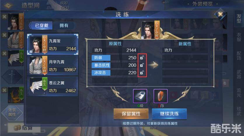 洗练时,点击锁头可保留左侧属性。锁住的原属性洗练后不会变更。点击保留属性新属性会覆盖未锁定的原属性。