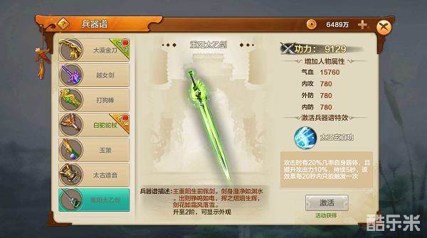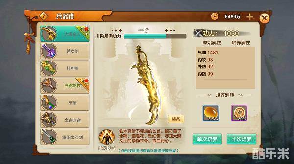 看了这么多是否已经有了心仪的神兵,建议如果材料允许的话可以每一个神兵都升级,虽然不能装备使用技能,但是也会增加相应的功力值,如果材料不足的话就根据自己的职业选择一把一直用下去吧~
