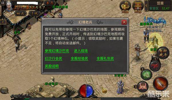 在幻境沙巴克中获胜的行会将给服务器的全体玩家带来福利,全服经验奖励,礼包奖励,以及行会成员的炫酷称号奖励。