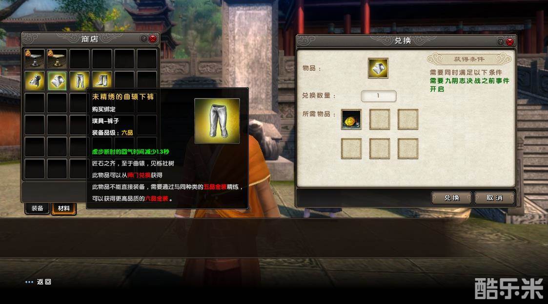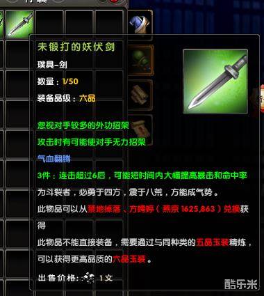 六品武器装备的套装效果可在对应的铁匠/裁缝师傅处进行转换。套装转换在支付少许银两的基础上还需要消耗材料物品。