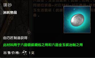 需要消耗物品“璞砂”,可由巧匠制造获得。制作图纸由禁地“雁门关守军线(困难)”掉落