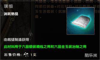 需要消耗物品“璞缎”,可由裁缝制造获得。制作图纸由禁地“雁门关守军线(困难)”掉落