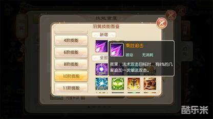 每阶会新增技能,也就是说洗的时候有可能洗出新增技能也有可能洗出低阶技能,例如现在洗10阶的“乘胜追击”技能,那么会在2阶至10阶所有没有拥有的技能中随机重置出。