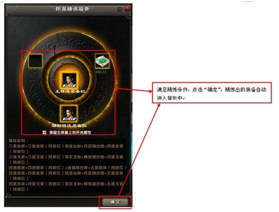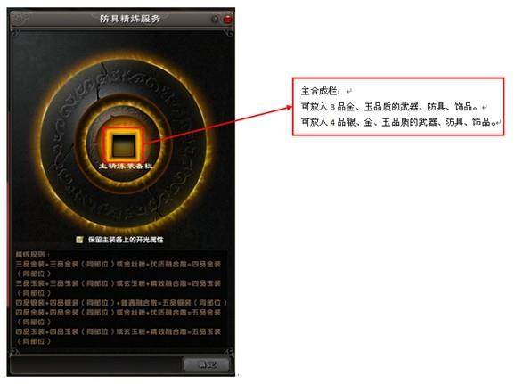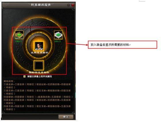 1. 主精炼装备必须是开光完毕的装备(装备耐久>0)