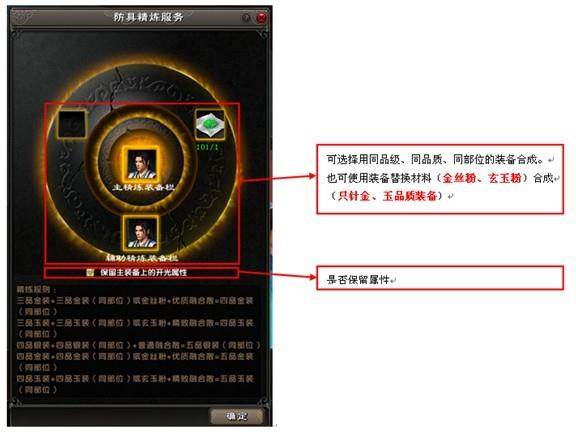 4. 主装备栏中的装备是绑定的,合成出来装备也是绑定的。
