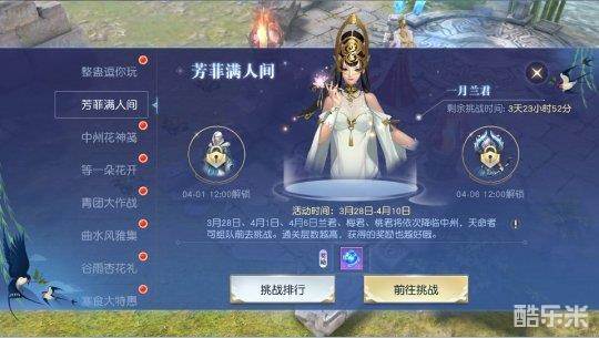 清明春意浓,赏花正当时。即日起至4月10日,《镇魔曲》“双节”活动火热开启!“芳菲满人间”活动里,梅君、兰君、桃君三位花神依次降临,副本全面开放;“中州花神笺”中,天命者们只要参与日常任务完成拼图并分享朋友圈即有奖励送上;活动期间每天三个时间段还将开启“等一朵花开”活动,天命者们只需要猜对三朵花的颜色就能参与到活动之中——赏花活动多,魂珠、海量经验、巨额银币、绑定元宝、明光玉、七星鼎等奖励等你拿!