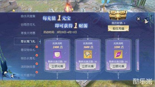 活动期间,天命者们的每1元宝充值还将获得1点财运,在“草长莺飞礼”中利用财运即可兑换天宫诏书、仙蟠桃、七星鼎等珍稀奖励,千万不要错过咯!