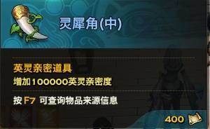 除了以上的途径外,心急的谕霸们还可以使用各类亲密道具来为英灵提升亲密度。如下图所示,点击总览面板中亲密度右侧的“+”号就可以进行喂食啦。其中,各类灵犀角可用于提高英灵的亲密度,而连理枝则比较特殊,将直接提升1级亲密效果。需要提醒的是,连理枝并没有实际提升英灵的亲密等级,因此不用担心使用了连理枝之后英灵升级亲密等级会变得更困难噢~