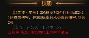 四星技星辰:对两个目标造成243.18%攻击伤害,并且20%概率只承受普通伤害。持续2秒。