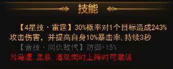 四星技雷霆:单体造成243%的攻击伤害,提高自身10%暴击持续3秒。