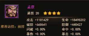 技能上来看孟获在前排后排都可以,因为这个人的属性其实很全面。输出不低,防御也不低。都很优秀。