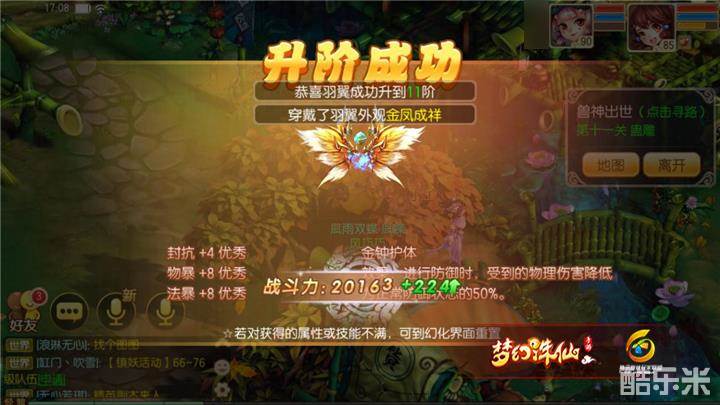 翅膀11阶之前(不包括11阶),单数升阶(1、3、5阶等)可以获得额外属性,双数升阶(2、4、6阶等)可获得特殊技能。在11阶之后,则是每一阶都有额外属性和技能。