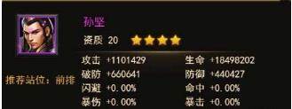 这个属性值对比那些精致的角色其实数字上差不太多,因此数值上孙坚没有太多劣势甚至没有劣势。