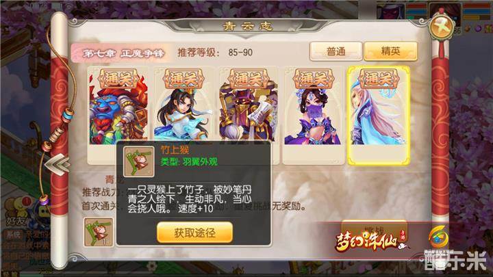 特殊奖励:竹上猴(额外属性速度+10)