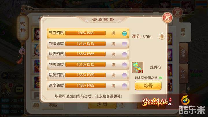 虽然玩家对于宠物的划分有很多类,但是宠物的优劣并不完全取决于主资质的高低,全资质越高对于宠物的实力提升越明显,所以满资质的魔兽就无需玩家再用炼骨符去提升资质了。