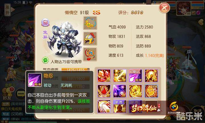 在实战竞技中天狼出手前每受到一次攻击就会触发隐忍技能(在同一回合技能效果可累计),从而我们可以选择招架、铁壁、抗拒等技能来减少天狼受到的伤害从而增加天狼的生存能力。不过现今的竞技场中重生技能被审判技能克制太凶,这里推荐玩家使用保命技能,并且该技能搭配报复技能可以大幅提升残血状态下天狼的攻击力。