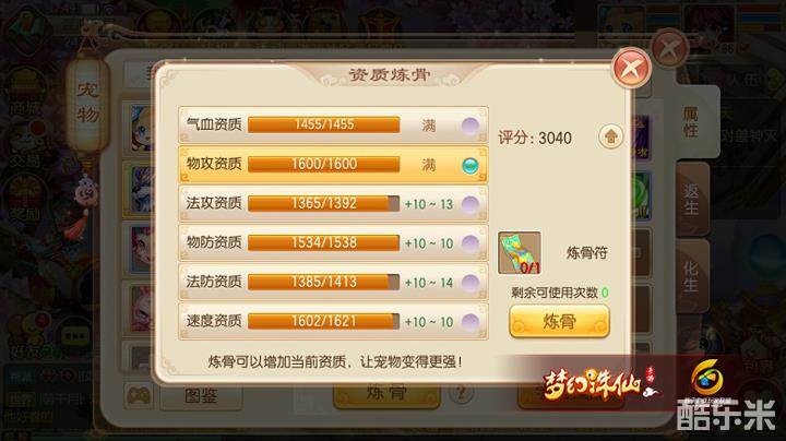 玩家在培养时天狼可追求变异(使用返生丹有几率获得),毕竟天狼宝宝和变异天狼两者间的资质成长还是有不少差距的,而玩家对于变异天狼资质不满意的话还可以使用炼骨符来增加资质,但是玩家在炼骨时建议去优先增加物攻资质;并且隐忍技能并不适合快速宠,所以玩家在培养天狼时不仅不要追求速度资质、也不要追求速度装备,尽可能的让天狼越慢出手越好。
