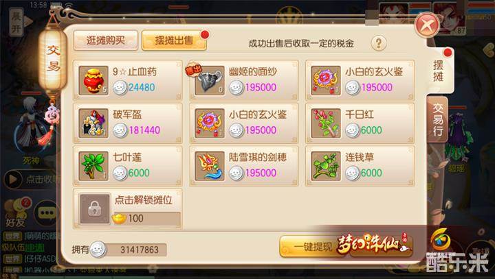 玩家在混沌时空挂机时可以获得各种各样的道具,虽然这些道具在品质上并不算高,但是对于玩家来说却是日常任务中所需的,所以玩家在打到这些道具后可以自行摆摊出售,这样就可以将修理装备损失的银币补回来了(在摆摊上架物品时可以先去看下当前市场的行情,根据别人的售价自行更改上架金额可以让自己的道具卖的更好)。